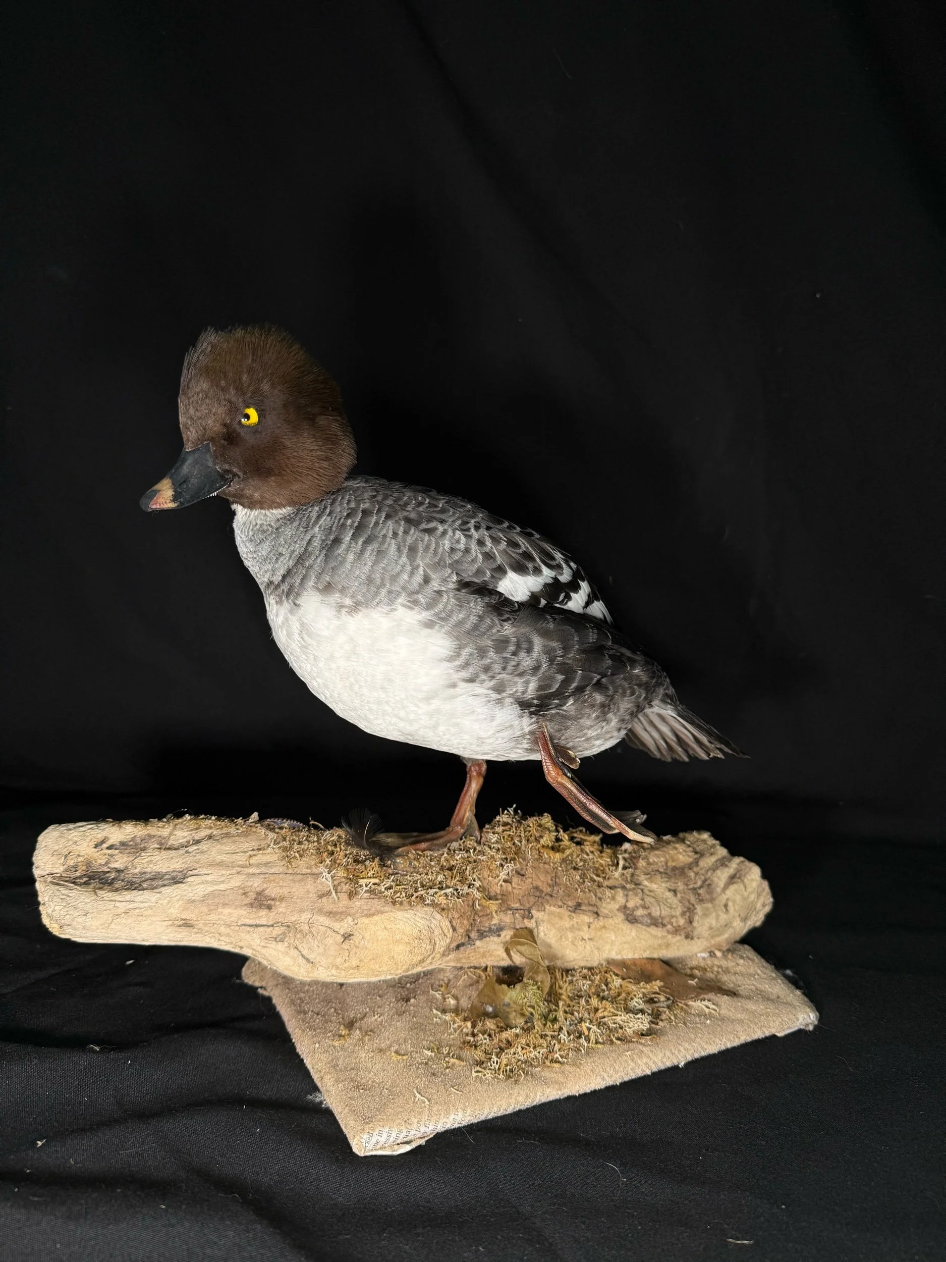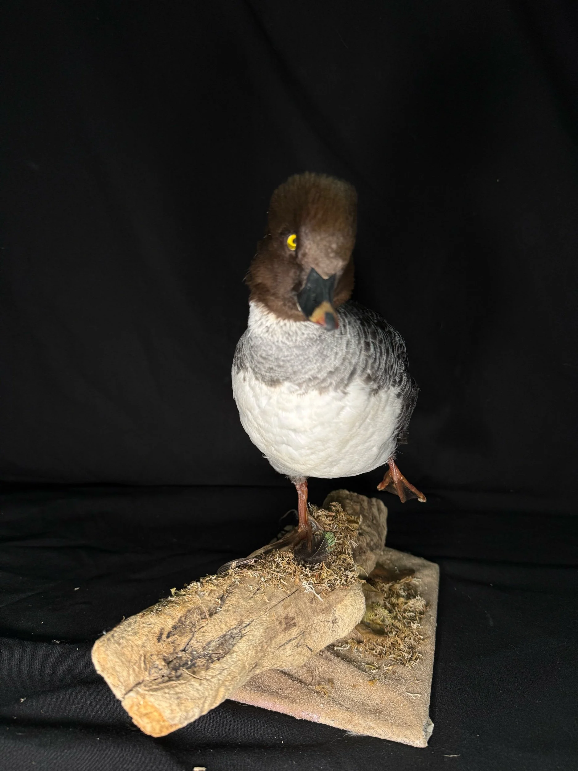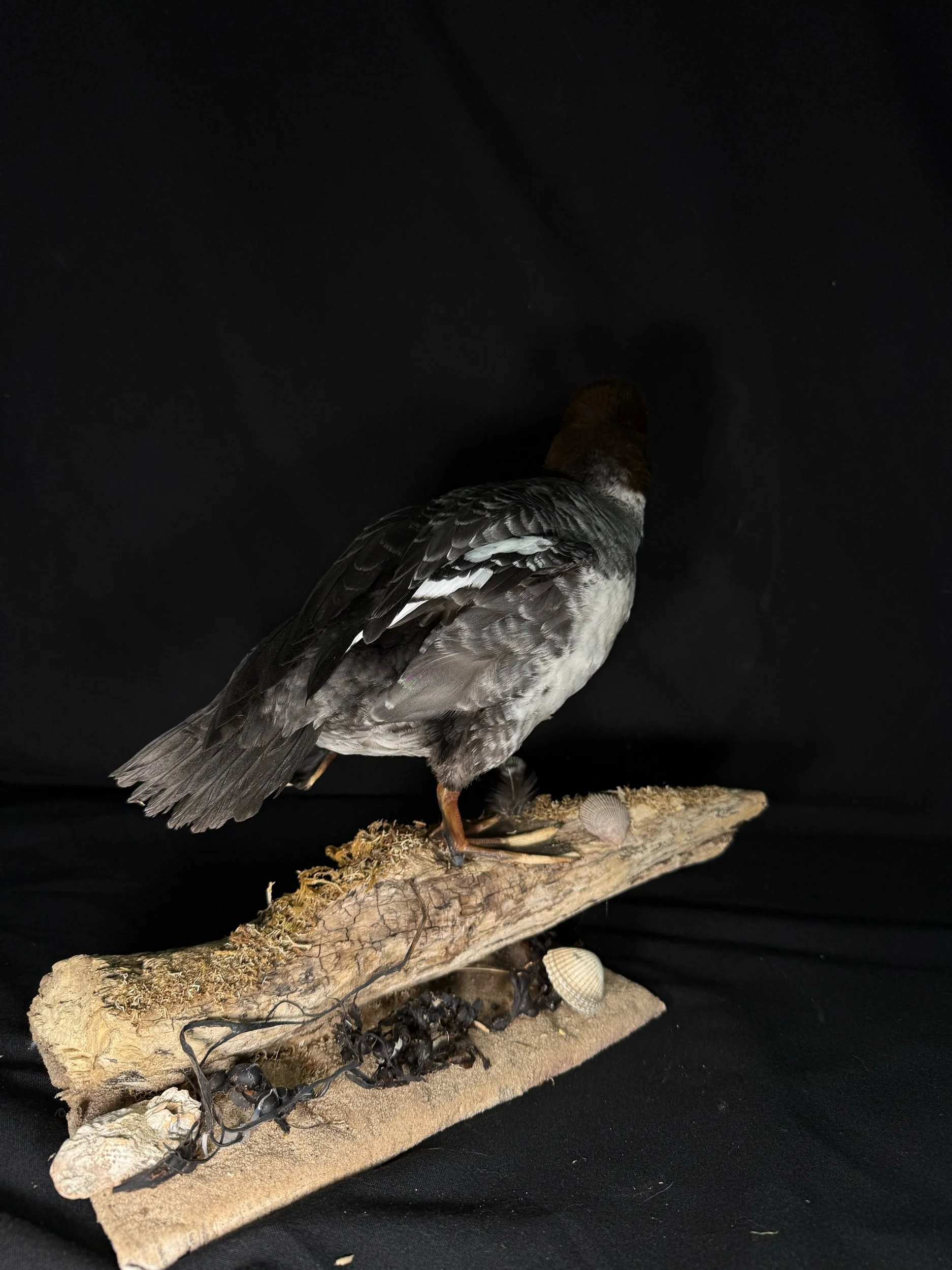 Duck is positioned in a resting/stretching pose creating a dynamic feel. Very nice plumage, would make a nice addition to any home