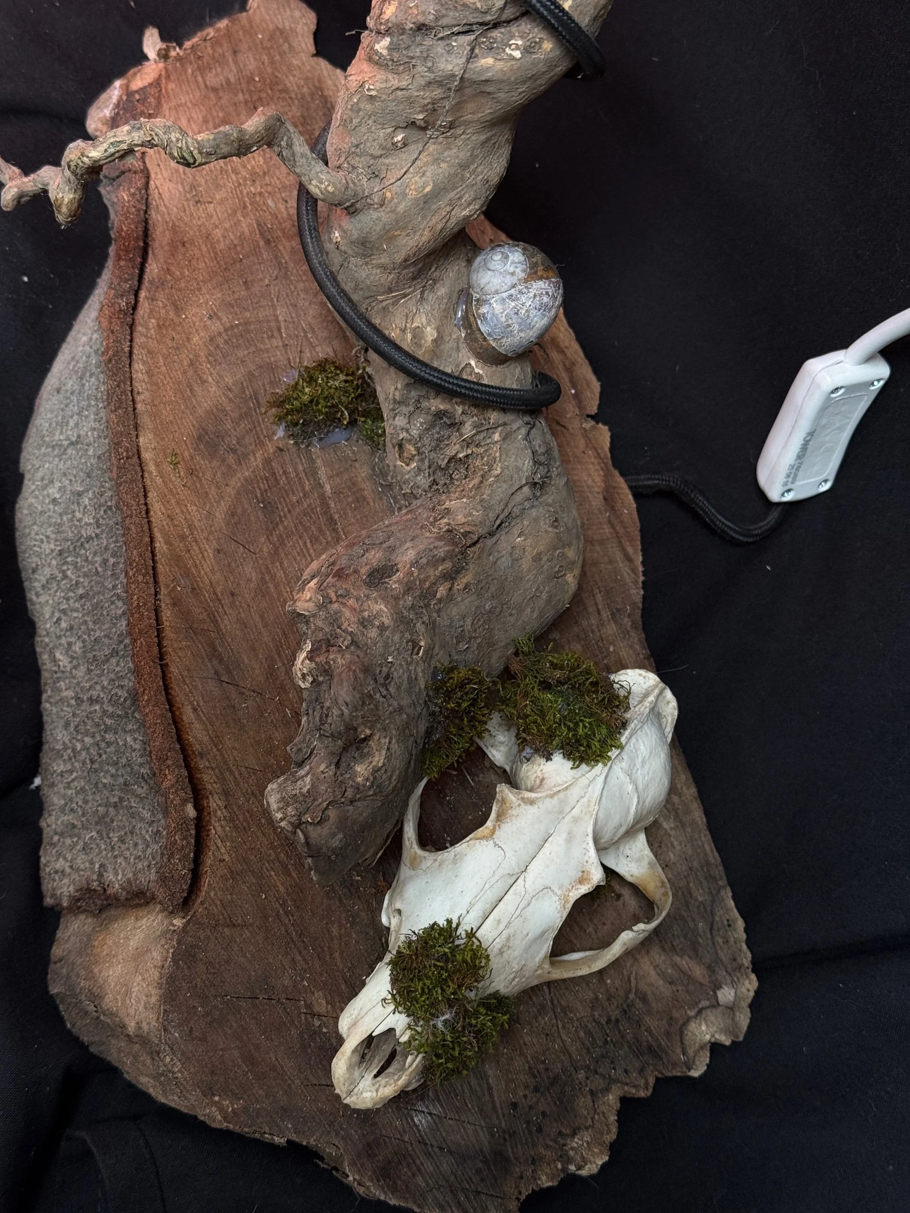 At the base, a real fox skull is integrated with subtle moss detailing, adding depth, texture, and a raw natural aesthetic that makes this piece truly stand out as a display centerpiece.