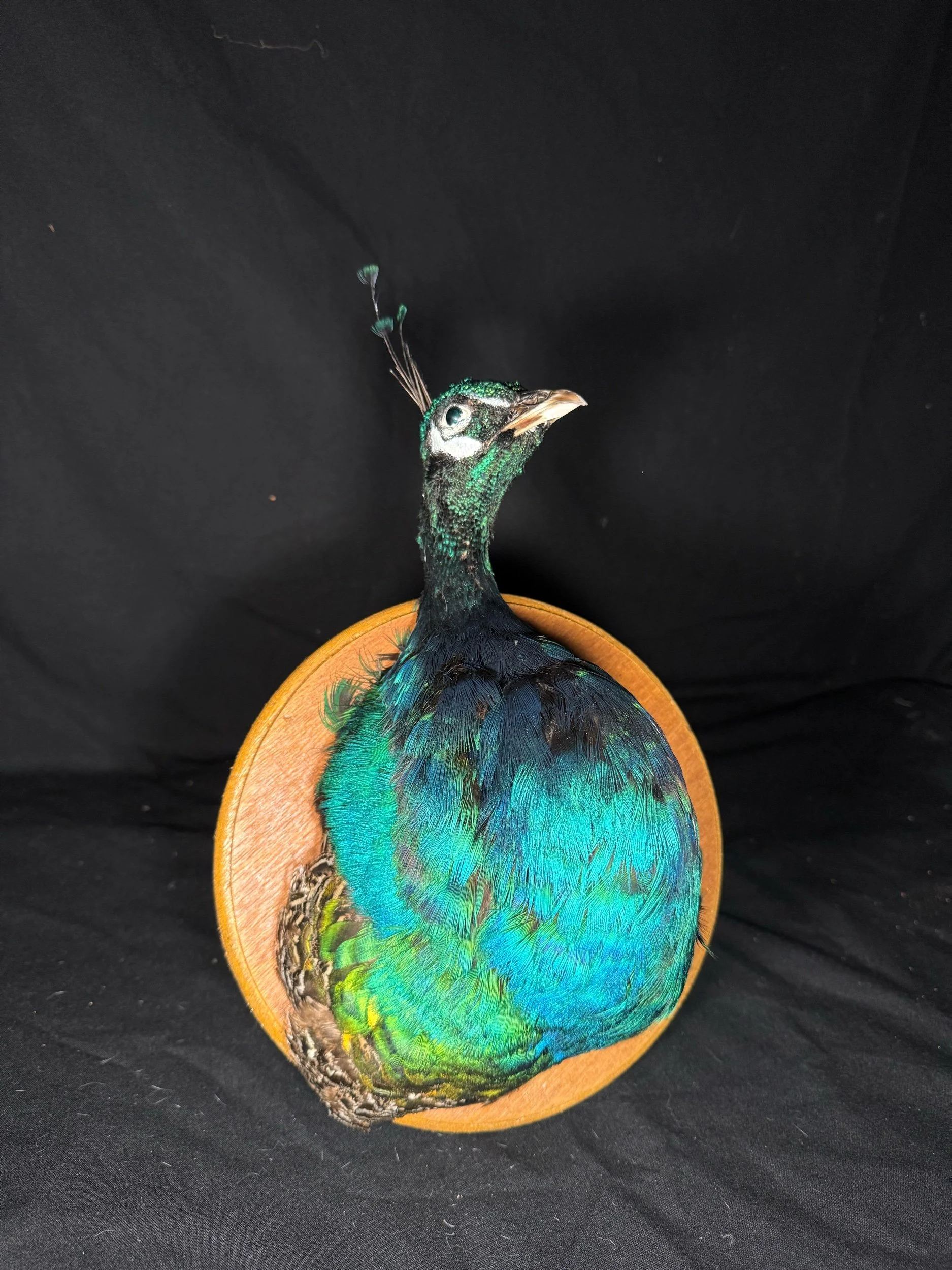 A vibrant and stunning new mount of a peacock wall mount.