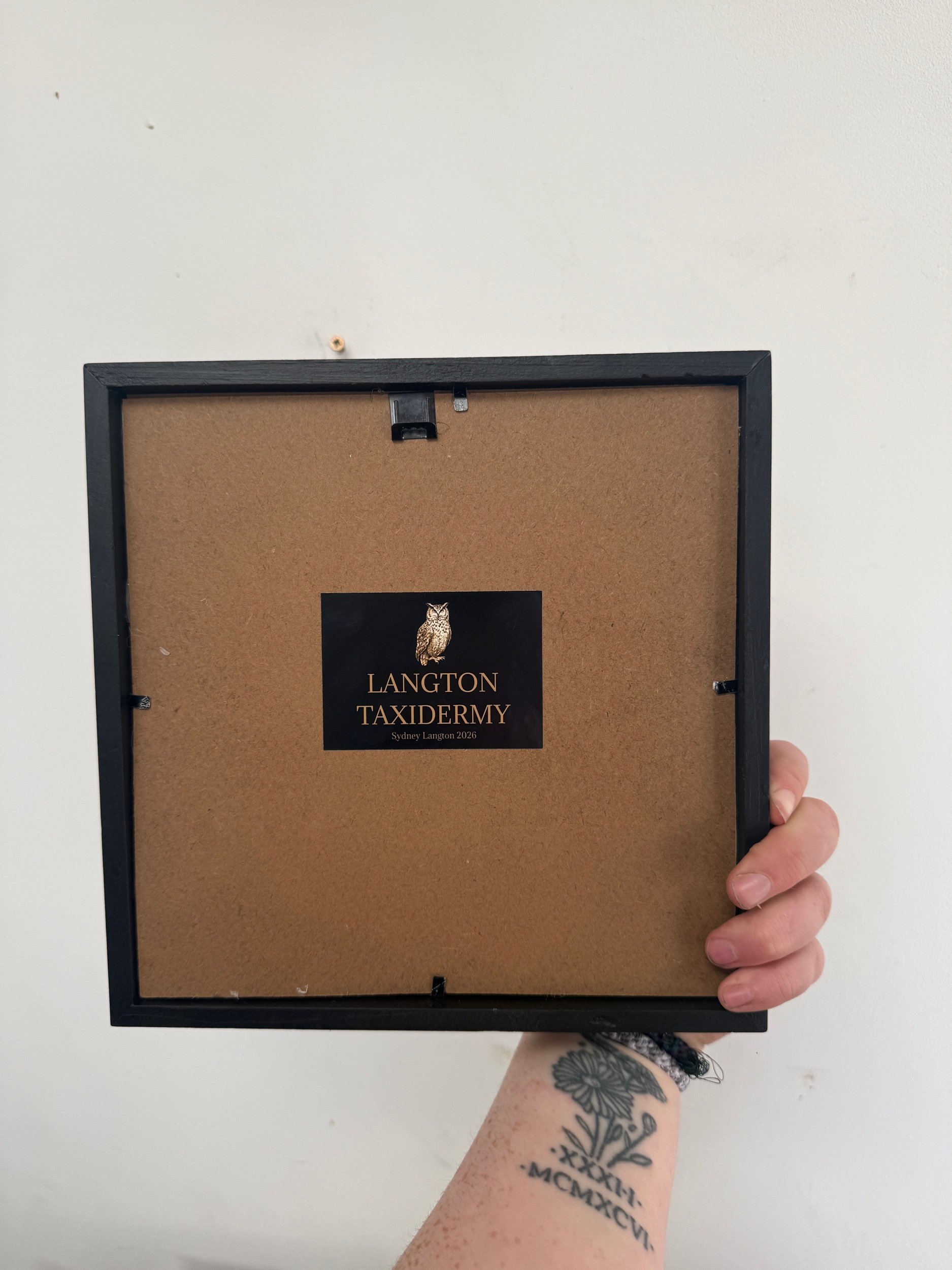 A really nice curios to any space in a black wooden frame